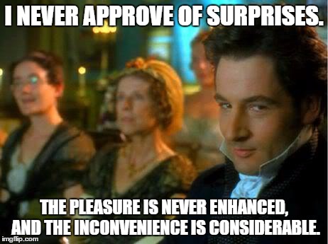 Now, I know that small surprises can be fun (I’ve experienced a few of those), and perhaps for some the pleasure is enhanced, so I know there are exceptions. I wouldn’t say I never approve of surprises. Just in general, and especially with really big ones, like the inconvenient pianoforte kind.