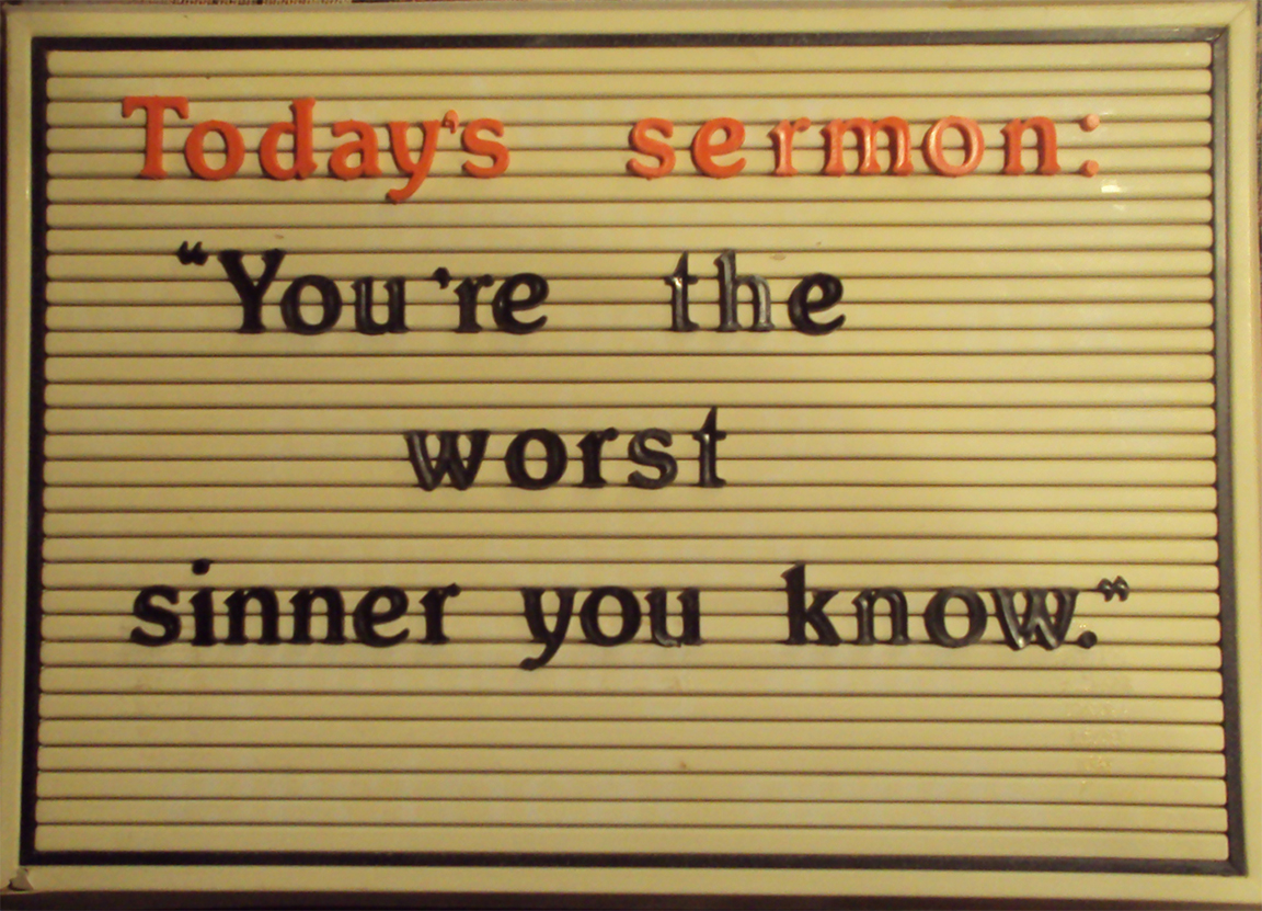 “Every one of us can honestly claim that ‘worst of sinners’ title. No, it isn’t specially reserved for the Adolf Hitlers, Timothy McVeighs, and Osama bin Ladens of the world. William Law [a 17th-century writer] writes, ‘We may justly condemn ourselves as the greatest sinners we know because we know more of the folly of our own heart than we do of other people’s.’ . . . So admit you’re the worst sinner you know.”