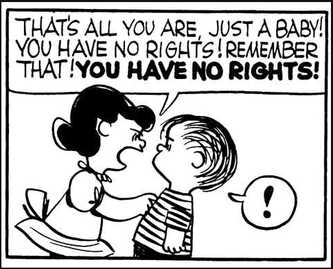 Also, notice the “scare quotes” that many of the no-rights teachers used, the quotation marks that imply that we have rights only in our imaginations, not in reality.