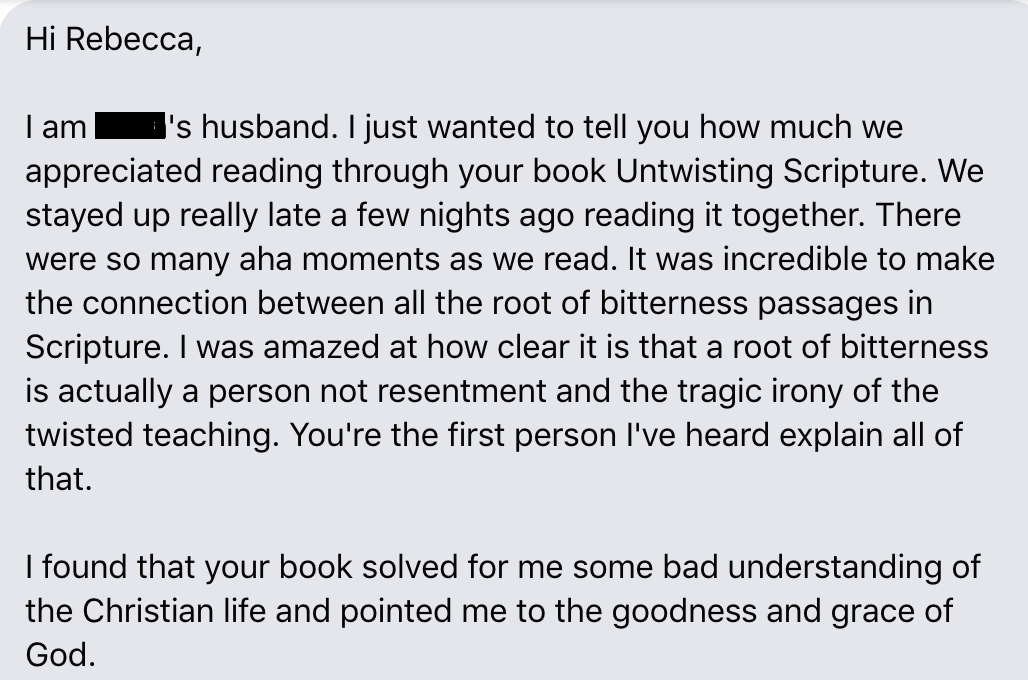 Rebecca, I’m so excited for your Untwisting Scripture sequel to hit the shelves. That’s big news!